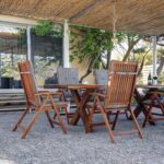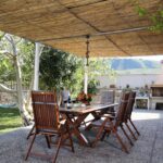 At the pergola area, stands a large wooden table with comfy chairs, where you can have fun doing BBQ, rest after your swimming time, enjoy the beautiful sunset or relax during the night.