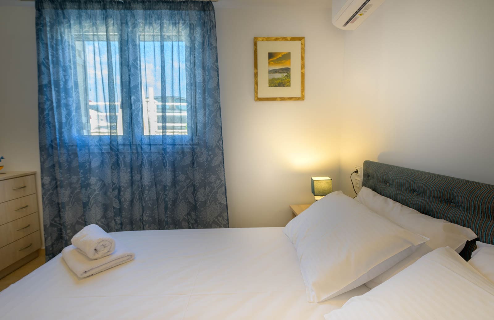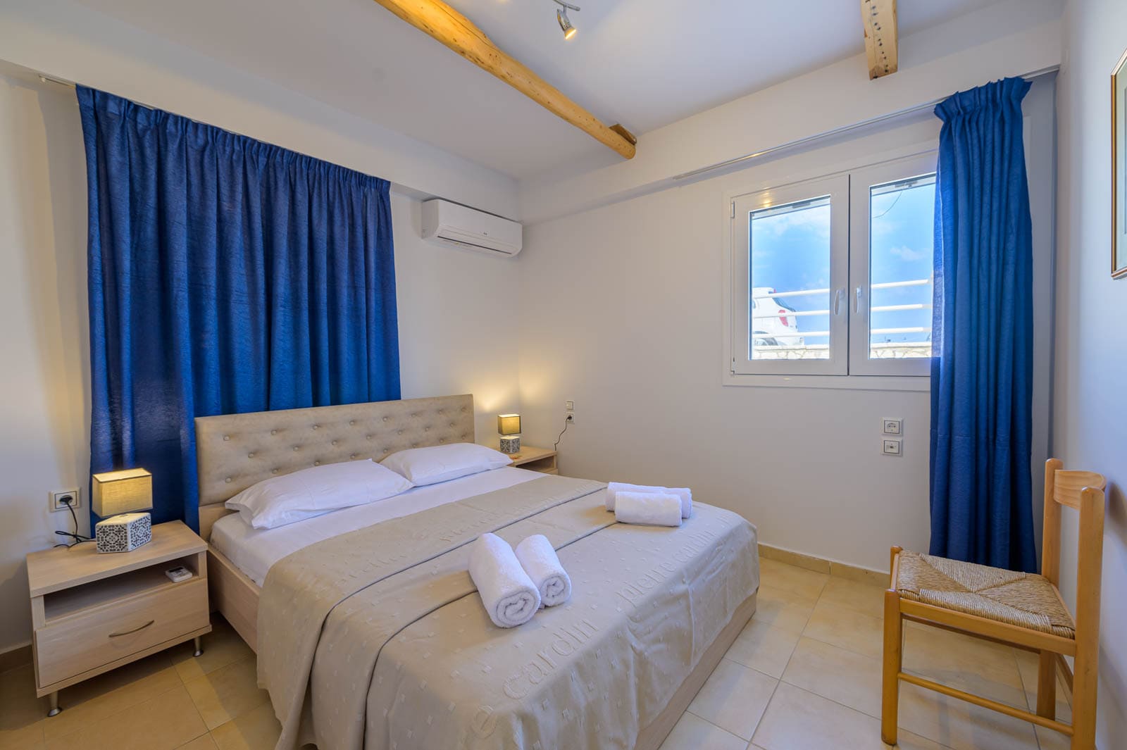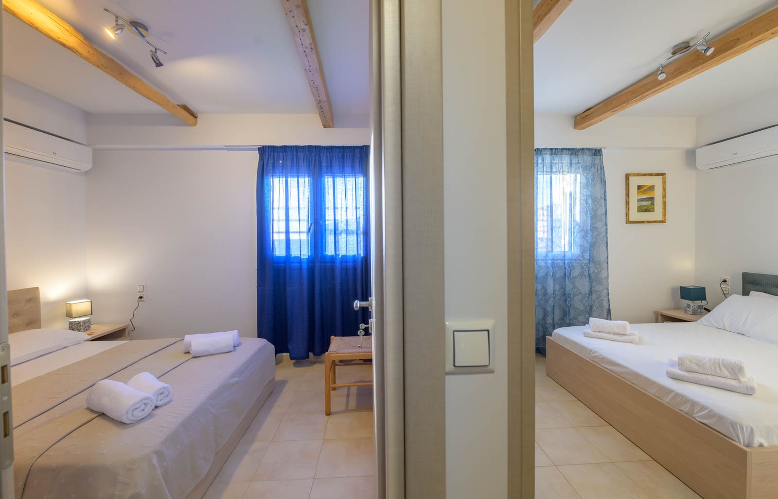 The house is 70 sq.m. and consists of 3 bedrooms with a view at the beach. Two of the bedrooms have a double bed, and the third a single bed.