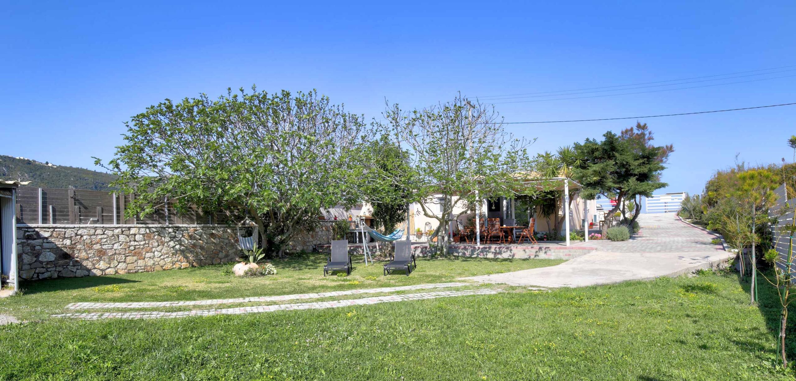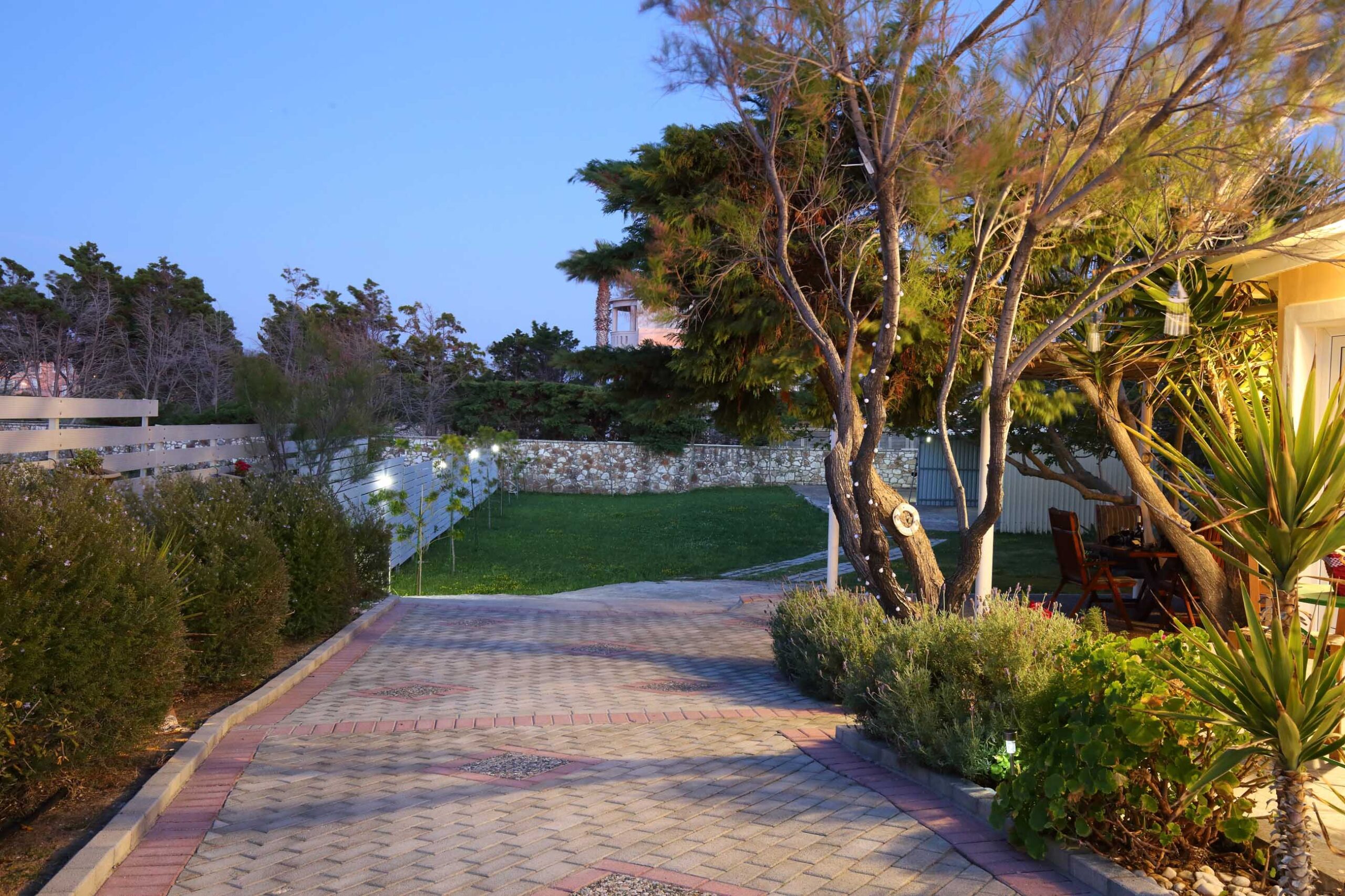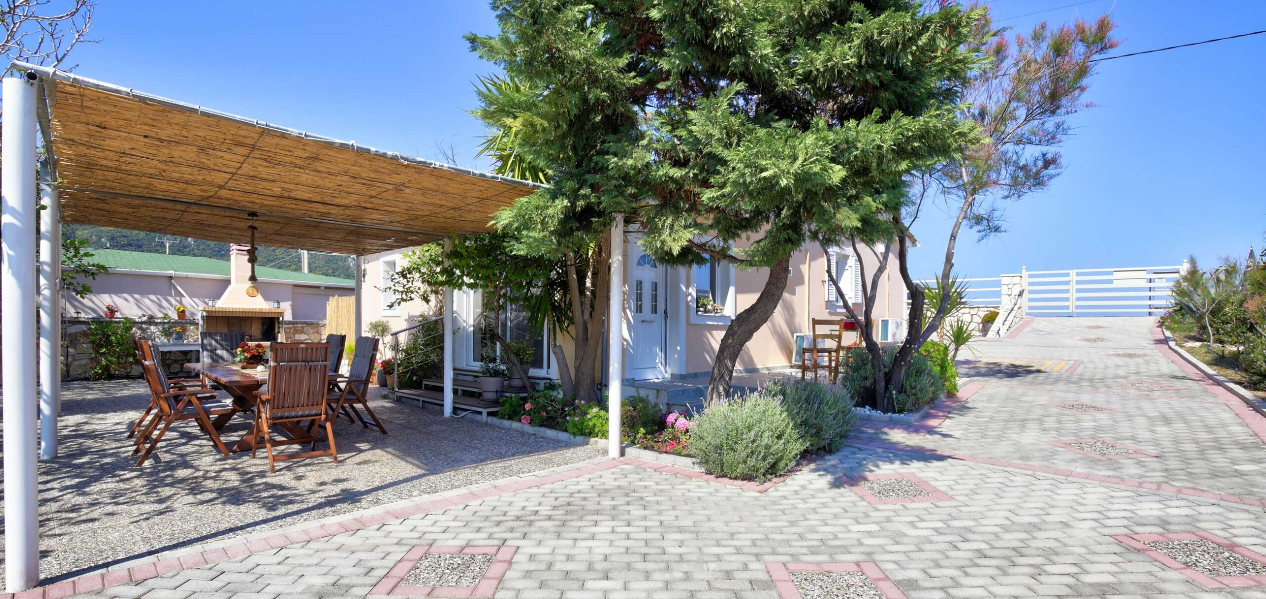 The eastern paved yard is a natural continuation of the villa and is right beside the garden.